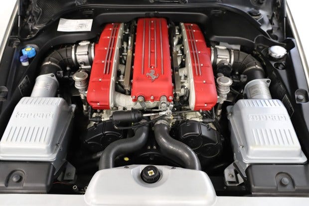 Pop the hood open and underneath lies a naturally aspirated 5.7L V12. The roaring beast produces 533 horsepower and 434 lb-ft of torque, rocketing you to 60 mph in just 4.2 seconds and reaching a top speed of 199 mph. Fun fact: The 612 Scaglietti shares its engine with the 575 Superamerica.